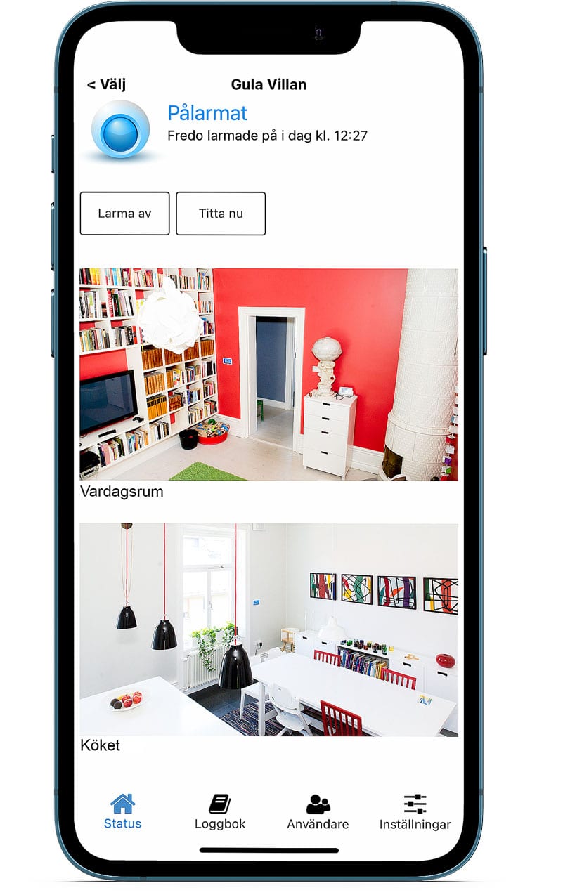 HD-bilder och brandlarm direkt i mobilen, smart dubbeldetekterande kamera, hög sekretess, skalskydd och zonlarmning.